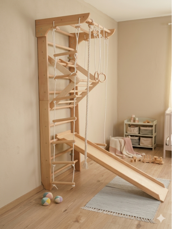 • Schaukel, Trapez und Kinder-Dreiecksgriff – für spielerische und sichere Unterhaltung.