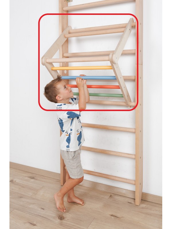 Abnehmbare Kinderdreieckstange ist ein lustiges und vielseitiges Zubehör für die SportBaby-Wandleiter, das Kindern sicheres und angenehmes Spielen und Bewegen ermöglicht. Die abnehmbare Stange lässt sich einfach an jedem Modell der schwedischen Leiter befestigen und wird zu einer echten Bewegungs- und Entwicklungszone für Ihr Kind.