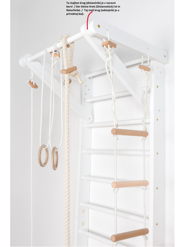 - Belastbarkeit: Leiter bis 150 kg | Obere Stange bis 100 kg | Hängende Elemente an Seilen bis 60 kg