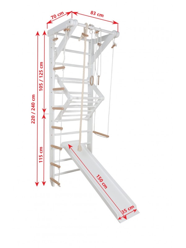 Wir präsentieren die weiße Holz-Kletterwand mit Zubehör – die perfekte Lösung für aktive Freizeitgestaltung der ganzen Familie. Ein zertifiziertes Produkt aus europäischer Herstellung, geeignet für Kinder und Erwachsene, speziell für den Innenbereich entwickelt.
